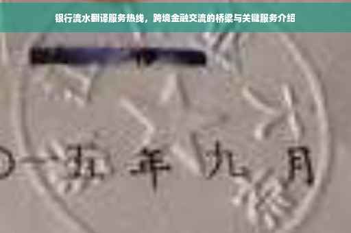 银行流水翻译服务热线是专为满足跨境金融需求而设立的专业服务,它旨在将银行流水账单中的内容进行准确翻译,以便不同语言背景的人士进行金融交流和操作,这一服务通常由专业的翻译机构或翻译人员提供,涉及金融、财务、税务等领域的专业术语和业务流程。