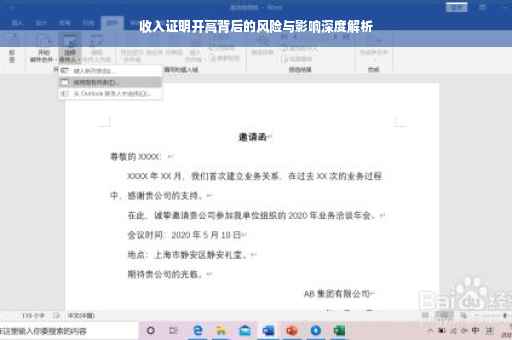 在当今社会,收入证明已成为许多场合不可或缺的一项证明材料,无论是申请贷款、办理信用卡,还是求职、升职,收入证明都扮演着重要的角色,一些人出于各种目的,可能会选择开高自己的收入证明,收入证明开高的影响究竟有哪些呢?本文将对此进行深入探讨。