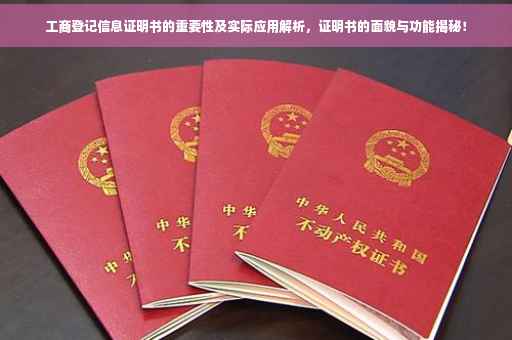 在当今社会,随着经济的繁荣和市场的开放,越来越多的人投身于创业热潮,在创业过程中,工商登记是不可或缺的一环,而工商登记信息证明书作为创业过程中的重要文件之一,其重要性日益凸显,本文将详细介绍工商登记信息证明书的作用、获取方式及应用场景,帮助大众更好地了解和运用这一证明文件。
