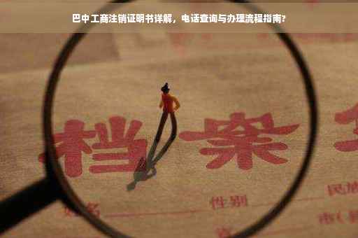 本文旨在为广大企业提供有关巴中工商注销证明书电话及办理流程的详细信息,以便企业在需要时能够迅速找到所需信息,顺利完成工商注销手续,如有更多疑问,欢迎咨询专业人士或致电巴中市工商行政管理局。
