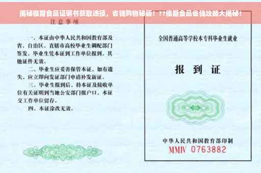 摘要:本文将为你揭秘临期食品证明书的获取途径,教你如何轻松获取这一重要证明文件,以享受省钱购物的乐趣。无论你是追求新鲜食品还是寻找超值优惠,掌握这一新姿势都将让你在购物时更加得心应手。快来了解临期食品证明书的获取方法吧!