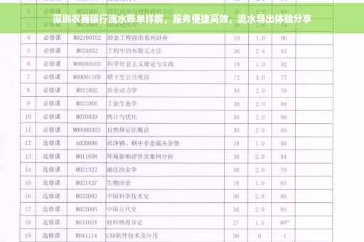 深圳农商银行流水账单是银行为客户提供的一种便捷服务,用于记录客户在一定时期内(如一个月)的账户交易明细,流水账单包括存款、取款、转账、消费等交易信息,是客户管理财务的重要工具,深圳农商银行流水账单具有以下特点: