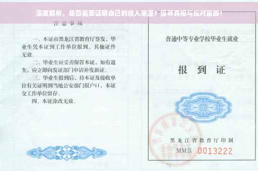 是否需要证明收入来源是一个复杂的问题,涉及多个层面。本文将探讨背后的真相及应对之道。内容涵盖个人财务透明度的重要性、不同情境下的证明需求,以及应对策略。通过阅读本文,您将了解在何种情况下需要证明收入来源,以及如何有效应对这一问题。本文还将提供有关提高财务透明度的实用建议。