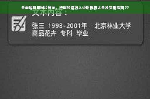 摘要:本文将全面解析法庭经济收入证明模板,并提供相关的图片展示。文章内容包括模板的详细解析,旨在帮助读者了解如何正确填写法庭经济收入证明。还将提供丰富的法庭经济收入证明模板图片,以供大家参考和借鉴。通过阅读本文,读者可以了解到如何正确准备法庭经济收入证明,从而确保相关程序顺利进行。