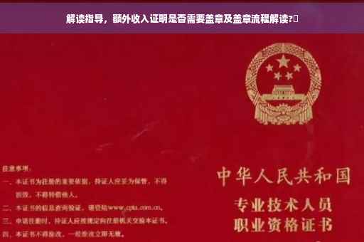 盖章是对证明文件真实性和合法性的确认,具有法律效力,在额外收入证明中,盖章是必要的,以证实证明文件的来源合法、真实有效,不同的机构和组织可能对盖章的要求有所不同,政府机构、企事业单位出具的证明文件通常需要盖章才能生效。