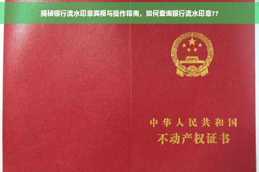 摘要:银行查流水印章是核实交易记录的重要步骤。揭秘背后真相,操作指南简明扼要。查询流程包括准备相关材料,如身份证和银行卡,通过网上银行、手机银行或柜台等渠道进行查询。了解银行查流水印章的方法,有助于保障个人权益,维护资金安全。