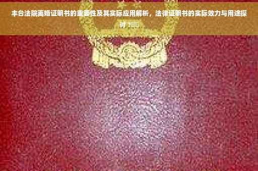 随着社会的发展和人们观念的转变,离婚现象在我们的生活中越来越普遍,为了保障当事人的合法权益,北京市丰台区人民法院(以下简称丰台法院)积极推行离婚证明书制度,本文将详细介绍丰台法院离婚证明书的重要性及其实际应用,帮助大家更好地了解这一制度。