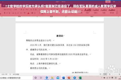 尤其注意的是军自考认证时,同时要认证专科,无专科学历的,即便是本科网上可查,也无法认证。2、在看军队函授学历学历认证,如军成教学历。这类学历是不上学信网的。也就是说学信网查询不到,但不代表是假的。这类学历只针对军人,军人身份的。否则无法认证。也就是国家不承认的 3、军队函授学历学历认证,带好材料: 1)毕业证; 2)军官证或者士兵证(如果已经退伍的提供退伍证或转业证); 3)身份证; 4)入伍批准书(或公民应征入伍登记表); 5)学员学籍管理登记表; 到各地的教育部门的行政大厅的认证中心就可以认证。全国的认证中心认证报告,只要在学信网上可以查到都一样的。各地收费稍有差别。学信网士官学院学历认证流程: