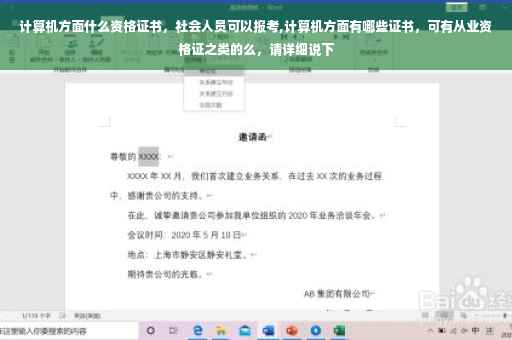 计算机在中国目前有三种从业资格证书,一类是操作证书,由劳动部门颁发,可通过各种社会培训机构参训后报名参加考试,如一级、二级和普通操作证书;二类是专业技术证书,由工信部组织考试,各省颁发证书,直接网上报名参加考试,分初级、中级、高级,如程序员、系统分析师、信息系统项目管理师、构架师等证书;三类是由专业信息公司组织专门的实用技术考试,颁发专业从业资格证书,如西门子交换机维护工程师、ORACLE数据库维护工程师、华为路由器售后服务工程师等证书。