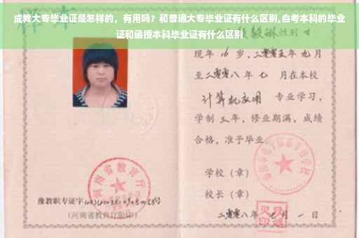 3、成人高校毕业证上面写的是“成人高等教育”,全日制大专毕业证上面写的是“普通高等学校”;