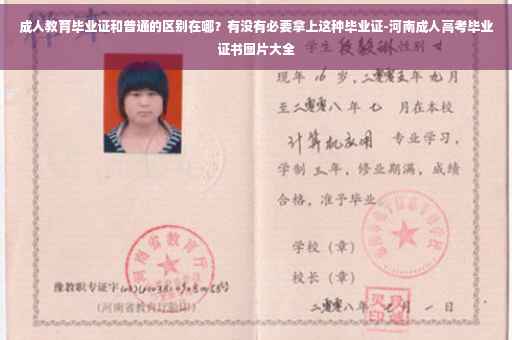 总之,成人教育毕业证和普通高校毕业证是有很大区别的。但也有很多相同点。如果手中只有高中或者中专学历。那么也是很有必要拿上成人教育学历的,起码来说不要让自己落后太多。