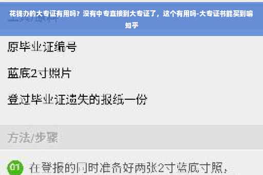 不要天真幻想了。大专以上学历必须是国家承认并在高教部的学信网上注册和查询到的,否则国家是不承认的。不要图一时的省事省力省钱而被骗。如果都能轻松拿到大专学历,国家干嘛要学三年的时间呢?买到的学历只能骗自己,骗不了公司和上级机构的,只要上网一查真伪一目了然。正规大专学历没有高中和中专毕业证书是不能报考的。如果需要,可以先报名成人高中或中专,然后按台阶一步一步住上走。