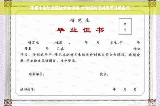没有不用中专毕业证的大专学校。因为大专都是需要中专毕业证原件的,全日制大专在学生办理报名的时候也是需要学生出示中专毕业证,非全日制函授大专报名也需要中专毕业证,非全日制成人高考大专也是需要有中专毕业证才能参加成人高考