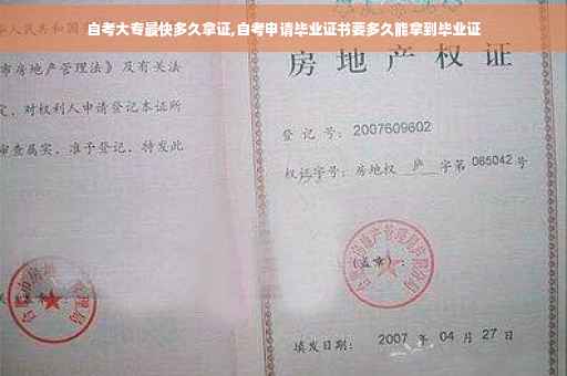 两年。自考大专最快需要2.5-3年的时间才能拿到毕业证,因为自考执行的是单科结业制,合格一门发一门的合格证书,而自考的考试科目是比较多的,一般在12-16门左右,所以最快也是需要两年半的时间。