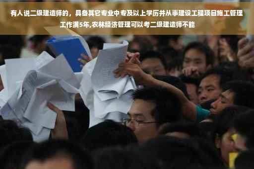学历要求真实,专业是工程或工程经济类;要有2年的工作经验。林业经济管理是符合报考注册一级建造师的。正常情况下,农林经济管理是可以报考注册二级建造师的。2、二级建造师执业资格考试综合考试专业考试: 综合考试包括《建设工程施工管理》、《建设工程规及相关知识》两科目两科目各专业考统考科目 专业考试《专业工程管理与实务》科目该科目6专业即:建筑工程、公路工程、水利水电工程、矿业工程、机电工程市政公用工程 3、6专业报考哪要看自职业发展所服务企业需求目前市场机电、市政金额水利水电比较紧俏 4、二级建造师执业资格考试报名条件: ()凡遵纪守具备工程类或工程经济类等专科历并事建设工程项目施工管理工作满2员报名参加二级建造师执业资格考试 (二)符合述报名条件具工程类或工程经济类级及专业技术职称或事建设工程项目施工管理工作满15员同符合列条件免试部科目: 1.已取建设行政主管部门颁发《建筑业企业级项目经理资质证书》免试《建设工程施工管理》《建设工程规及相关知识》科目参加《专业工程管理与实务》1科目考试 2.已取建设行政主管部门颁发《建筑业企业二级项目经理资质证书》免试《建设工程施工管理》科目参加《建设工程规及相关知识》《专业工程管理与实务》2科目考试 (三)已取颁发《华民共二级建造师执业资格证书》员根据实际工作需要选择《专业工程管理与实务》科目相应专业报名参加二级建造师相应专业考试 述报名条件关历或位要求指经家教育行政部门承认规历或位事建设工程项目施工管理工作限计算截止期12月31.1)考全科: 凡遵纪守法并符合下列条件之一的,可报名参加二级建造师全部科目考试: 具备工程类或工程经济类中等专科以上学历并从事建设工程项目施工与管理工作满两年; 具备其他专业中专及以上学历并从事建设工程项目施工管理工作满5年; 从事建设工程项目施工与管理工作满15年。