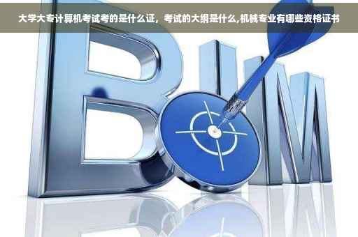 考试分为四个等级,不同等级的内容不同,一级主要考核微型计算机基础知识和使用办公软件及因特网(Internet)的基本技能。一级分为DOS版和Windows版,考核应试者计算机基本知识和使用微机系统的初步能力。考试科目有一级MS Office、一级WPS Office、一级Photoshop,一级共三个科目。一级WPS Office考试内容: (1) 选择题(计算机基础知识和网络的基本知识)。(2) Windows 操作系统的使用。(3) WPS 文字的操作。(4) WPS 表格的操作。(5) WPS 演示软件的操作。(6) 浏览器(IE)的简单使用和电子邮件收发。一级MS Office考试内容: (1) 选择题(计算机基础知识和网络的基本知识)。(2) Windows 操作系统的使用。(3) Word 操作。(4) Excel 操作。(5) PowerPoint 操作。(6) 浏览器(IE)的简单使用和电子邮件收发。一级Photoshop考试内容: (1)单项选择题 (含计算机基础知识部分,Photoshop 知识与操作部分)。(2)Photoshop 操作题(含3 道题目)。机械专业可以考以下证书: