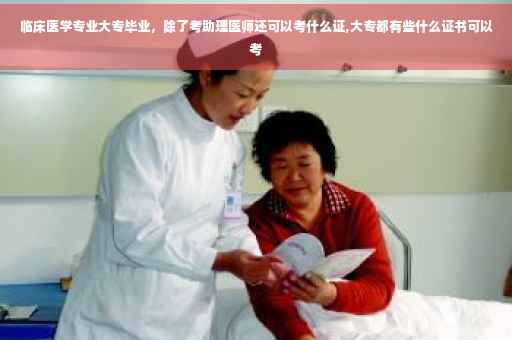 临床医学专业大专毕业,一般都是考助理医师证,然后做相关的工作后在考医师资格证; 据《中华人民共和国执业医师法》及有关规定具有下列条件之一的,可以参加医师资格考试: (一)具有高等学校医学专业本科以上学历,在执业医师指导下,在医疗、预防、保健机构中试用期满一年的; (二)取得执业助理医师执业证书后,具有高等学校医学专科学历,在医疗、预防、保健机构中工作满二年;具有中等专业学校医学专业学历,在医疗、预防、保健机构中工作满五年的。 (三)具有高等学校医学专科学历或者中等专业学校医学专业学历,在执业医师指导下,在医疗、预防、保健机构中试用期满一年的,可以参加执业助理医师资格考试。 以师承方式学习传统医学满三年或者经多年实践医术确有专长的,经县级以上人民政府卫生行政部门确定的传统医学专业组织或者医疗、预防、保健机构考核合格并推荐,可以参加执业医师资格或者执业助理医师资格考试。考试的内容和办法由国务院卫生行政部门另行制定。