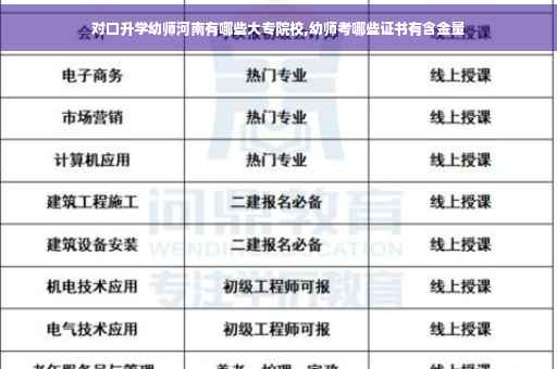 河南学前教育对口升学的学校有黄河科技学院、河南信息统计职业学院、商丘工学院等。