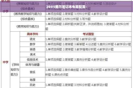 2005年戴尔笔记本电脑的配置是非常不错的,他的C P U是非常的先进的,达到了8G的水平,戴尔笔记本电脑的内存也是比较大的,运算速度也是非常快的,他的硬盘当时是非常大的达到60G的都有所以戴尔笔记本电脑的用着速度是非常的不错它的性能是非常不错的稳定的