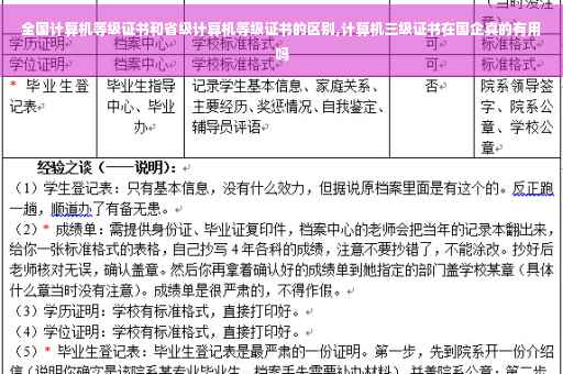 7、作为获得毕业证和学位证的硬性要求、用人单位招聘的条件以及评定职称的资格要求等,必须明确看清楚其所要求的是全国计算机等级证书还是高校(省级)计算机等级证书,二者不能相互替代使用。如无具体要求,只是笼统地说要求计算机一级或计算机二级什么的,一般二者可以通用。