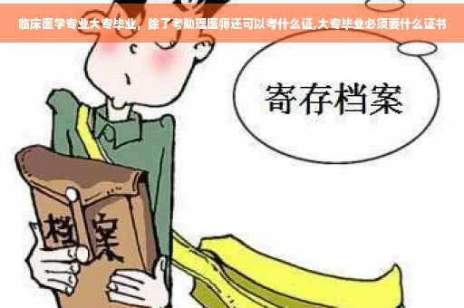 临床医学专业大专毕业,一般都是考助理医师证,然后做相关的工作后在考医师资格证; 据《中华人民共和国执业医师法》及有关规定具有下列条件之一的,可以参加医师资格考试: (一)具有高等学校医学专业本科以上学历,在执业医师指导下,在医疗、预防、保健机构中试用期满一年的; (二)取得执业助理医师执业证书后,具有高等学校医学专科学历,在医疗、预防、保健机构中工作满二年;具有中等专业学校医学专业学历,在医疗、预防、保健机构中工作满五年的。 (三)具有高等学校医学专科学历或者中等专业学校医学专业学历,在执业医师指导下,在医疗、预防、保健机构中试用期满一年的,可以参加执业助理医师资格考试。 以师承方式学习传统医学满三年或者经多年实践医术确有专长的,经县级以上人民政府卫生行政部门确定的传统医学专业组织或者医疗、预防、保健机构考核合格并推荐,可以参加执业医师资格或者执业助理医师资格考试。考试的内容和办法由国务院卫生行政部门另行制定。