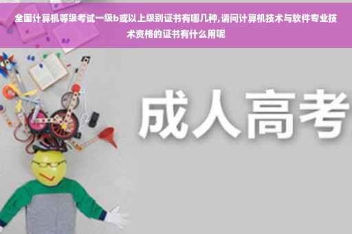 全国计算机等级考试一级b或以上级别证书有二级vb、二级c语言、二级C++、二级Java、二级WEB程序设计、二级VFP、三级PC技术、三级信息管理技术、三级数据库技术、三级网络技术等。 全国计算机等级考试(NationalComputerRankExamination,以下简称NCRE),是经原国家教育委员会(现教育部)批准,由教育部考试中心主办,面向社会,用于考查非计算机专业应试人员计算机应用知识与技能的全国性计算机水平考试体系。