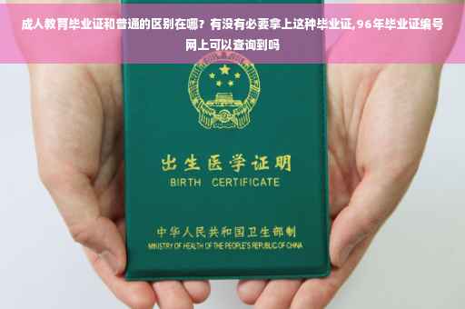 总之,成人教育毕业证和普通高校毕业证是有很大区别的。但也有很多相同点。如果手中只有高中或者中专学历。那么也是很有必要拿上成人教育学历的,起码来说不要让自己落后太多。