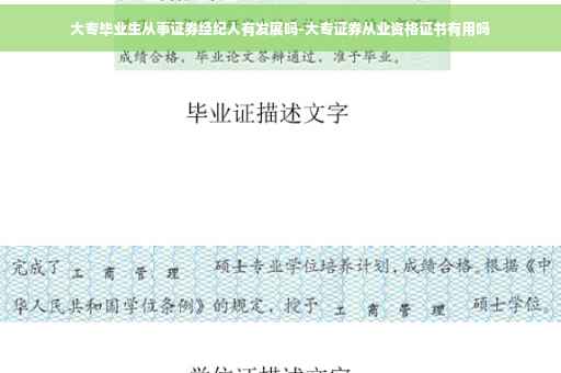 专科即使考了证券从业资格证,也不能保证就业。证券从业资格证是从事证券业务股票业务的从业入门证书。这个证书的难度很小,含金量也不高。你考上这个证书,不能够保证能进入证券公司。这公司的工作人员从来都是看学历的,因为你的学历太低,所以即便是有啦从业资格证书,也不一定能就业。