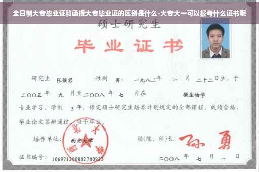 4、上课模式不同:全日制大专毕业采取上课制度,全日制班,主要面授上课形式。而函授教育的大专是业余通过网络或视频之类的媒介上课开式为主。全日制大专是一种全天候教学体制的大学。包括普通高校、民办院校(有统招资格)、军事院校、艺术院校、成人教育都包括在内。学生入学约两个月之后在高等教育网上能够查到学籍,如果不能查到学籍就不是普通高校全日制的学生。毕业的时候毕业证、学位证是国家教育部认可的,学习期间必须转档案,一般还需转户口关系等。简单说就是高考统招的大专。函授通过国家统一的成人高考,达到院校分数线后,被高校录取后,在三年左右时间内有计划的开设对应专业,以自学为主,面授为辅的教学形式。函授为成人高等教育的四种主要形式之一。注意:由于普通高等教育的学校设施先进,师资力量雄厚,教学正规,培养严格等,每年国家还有大量投入。所以其毕业生一般都非常优,用人单位选人时总是优先考虑普通高校毕业生(统招生,高职生,对口升学的大学生),但就业后,在单位的用途基本一样。