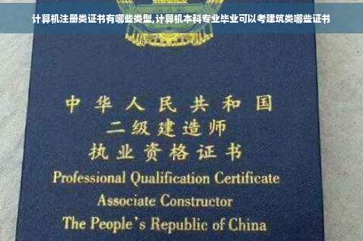 建筑职业技能类证书有架子工、混凝土工、管道工、机械操作工、瓦工、抹灰工、电焊工、吊车工、钢筋工、电工、钳工、装饰木工。还可以考以上各工种的技师和高级技师。国家注册类证书有注册一级二级建造师、注册工程师、注册安全工程师、注册造价师、注册评估师、注册城市规划师、注册建筑师等。一人可以考多个岗位证书、职业技能类证书和国家注册类证书,但国家注册类证书考上多个后只能注册到同一个单位才有效。加油 祝你成功。李宜普大学校园里最常见的计算机证书:全国计算机等级考试。这个证书简单的说,是非计算机专业学生必考的证书。这款证书共分为四个等级:一级、二级、三级、四级。一般的大学生考到二级、三级就差不多了。其中的最高级四级相当于全国软考的初级水平。总之,如果是针对计算机专业的学生来讲,此证书含金量不高。