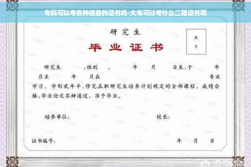 注会、二建、教师资格证、税务师证等。大专毕业证可以考注册会计师,大专毕业学历就可以报考,注册会计师人才缺口十分巨大,并且含金量非常高,作为刚毕业的人来说,可以尝试在该行业有所发展。