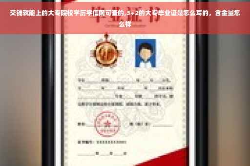3+2大专是中专学校开设的一种班,就是初中毕业生在中专报名读五年书就可以直接拿大专毕业证了,其实是成人高考大专毕业证,只有通过对口高职进入的大专才是全日制,所以3+2的大专毕业证是成人高考大专毕业证,含金量不如全日制。