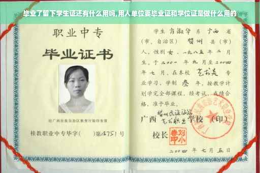毕业了留下学生证没有其他用处了,但是可以留做纪念,是对美好青春的记忆。青春一去不返,当你正值毕毕业寻梦的年纪,或许对毕业证没有什么感觉,主要精力用在事业的努力奋斗之中,随着岁月的流逝,当青春不在,两鬓斑白之际,看到毕业证就会打开记忆的闸门,对青春有着无限美好的回忆,同学情,师生情,让人感怀!