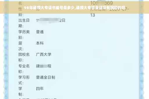 大家好,关于98年函授大专证书编号的问题,于是小编就整理了4个相关介绍98年函授大专证书编号的解答,让我们一起看看吧。