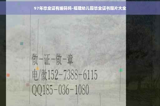 在我国,所发放的具有法律效力的证书均有编号,尤其是毕业证书。97年毕业证书同样有编码,其编码数字有年限、学校代码、专业代码、学号等几组数字组成。院校规模较小的,其毕业证编码也由年限、学籍号(含学校代码、班级序号、学号构成的)组成的。如学籍号为1101(校码)03(班级号)18(学号)的毕业证编号为9711010318。