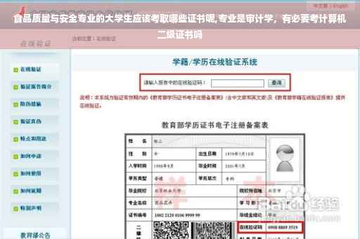建议食品质量与安全专业的大学生考取食品认证工程师证书,也可以考取ISO9001质量管理体系内审员或者审核员证书,还可以考取职业健康安全管理体系审核员证,还可以考取营养师证书,有了这些证书,食品质量与安全专业的大学生就业面就比较宽广。