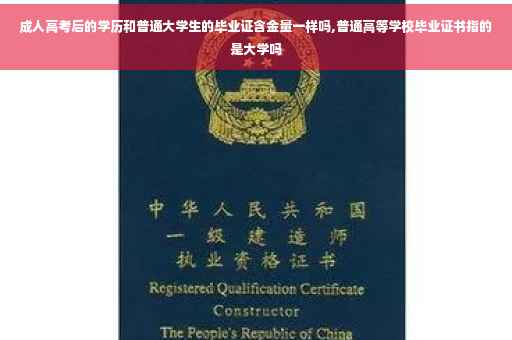 总之,成人教育毕业证和普通高校毕业证是有很大区别的。但也有很多相同点。如果手中只有高中或者中专学历。那么也是很有必要拿上成人教育学历的,起码来说不要让自己落后太多。