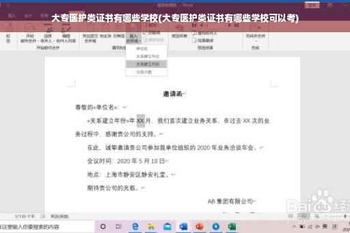 大家好,关于大专医护类证书有哪些学校的问题,于是小编就整理了4个相关介绍大专医护类证书有哪些学校的解答,让我们一起看看吧。