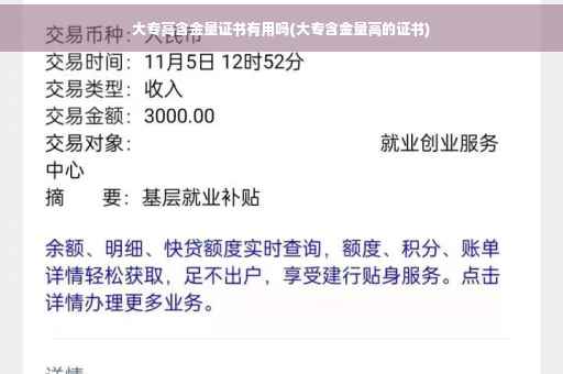 到此,以上就是小编对于大专高含金量证书有用吗的问题就介绍到这了,希望介绍关于大专高含金量证书有用吗的5点解答对大家有用。