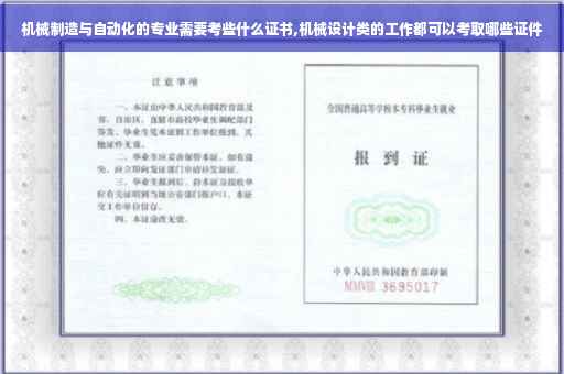 机械制造与自动化专业的证书主要包括以下几类: