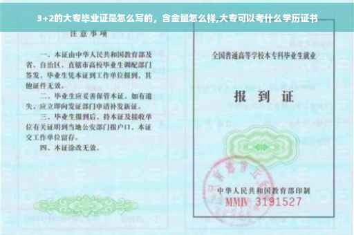 3+2大专是中专学校开设的一种班,就是初中毕业生在中专报名读五年书就可以直接拿大专毕业证了,其实是成人高考大专毕业证,只有通过对口高职进入的大专才是全日制,所以3+2的大专毕业证是成人高考大专毕业证,含金量不如全日制。