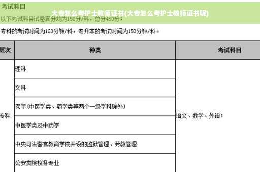 大家好,关于大专怎么考护士教师证书的问题,于是小编就整理了5个相关介绍大专怎么考护士教师证书的解答,让我们一起看看吧。