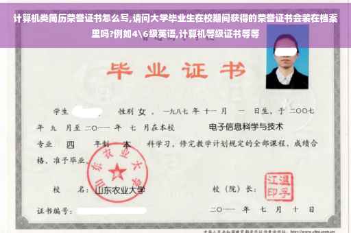 大学毕业生在校期间获得的荣誉证书会,例如4\6级英语,计算机等级证书等等.这些东东是国家认证的,当然会有记录的,当然不是把证书放在里面,放不下,但是里面有你的记录:如XX年,XX以XX分通过了国家英语四级等.