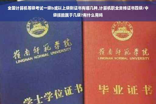 全国计算机等级考试一级b或以上级别证书有二级vb、二级c语言、二级C++、二级Java、二级WEB程序设计、二级VFP、三级PC技术、三级信息管理技术、三级数据库技术、三级网络技术等。 全国计算机等级考试(NationalComputerRankExamination,以下简称NCRE),是经原国家教育委员会(现教育部)批准,由教育部考试中心主办,面向社会,用于考查非计算机专业应试人员计算机应用知识与技能的全国性计算机水平考试体系。