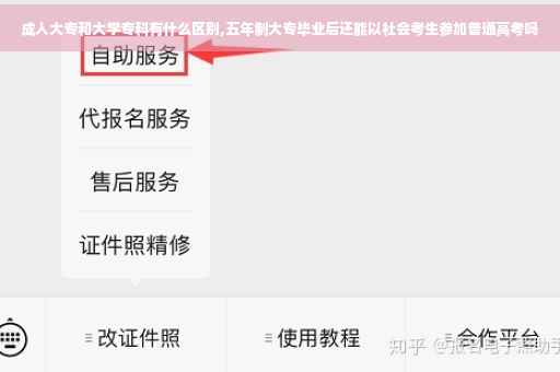 五年制大专是我国普通全日制中等职业技术高中学校开设的成人教育大专班。就是中专学校开设的成人大专班?初中毕业进中专学校后就要参加成人高考再在中专读五年拿成人大专毕业证,并且学信网有成人大专的学籍了。所以五年制大专毕业后不能以社会考生参加普通高考?