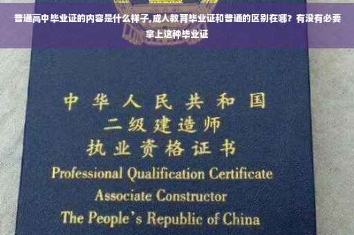 总之,成人教育毕业证和普通高校毕业证是有很大区别的。但也有很多相同点。如果手中只有高中或者中专学历。那么也是很有必要拿上成人教育学历的,起码来说不要让自己落后太多。