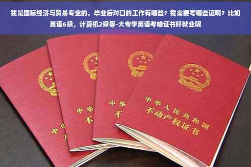 六是从事教学研究。 考证,英语六级、计算机二级是必要的,尤其外语等级分数越高越好。其它专业证书,并不太重要,近年国贸岗位对证书并没有要求,做外贸外销员、跟单员、报关员、外贸会计等证书也可考虑考一下。如果将来打算进入金融机构就业,可考银行从业资格、证券从业资格、基金从业资格。