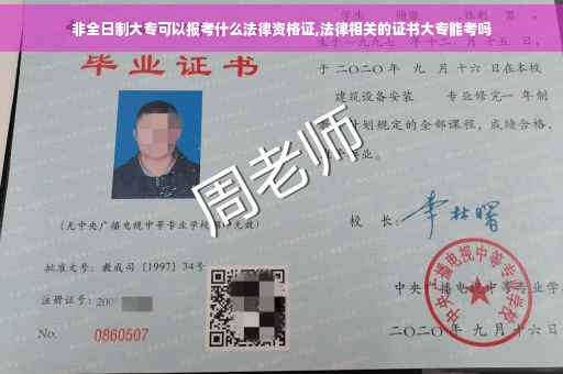 非全日制大专按照报考的条件是不能考法律职业资格证书的。因为在法律这个行业里,只有法律职业资格证书可以报考。非全日大专,没有资格报考。是非全日制大专,可以到放宽地区的所在地报考法律职业资格证书。可以拿到B证。但是非全日制大专的学习基础不太好,可能要考到B证也很困难。
