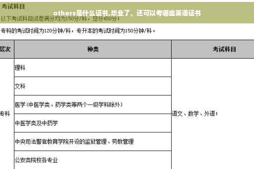 "others"并不是一个特定的证书,它是一个泛指,表示其他各种类型的证书。这可能包括但不限于:职业资格证书、学术证书、培训证书、技术证书等。