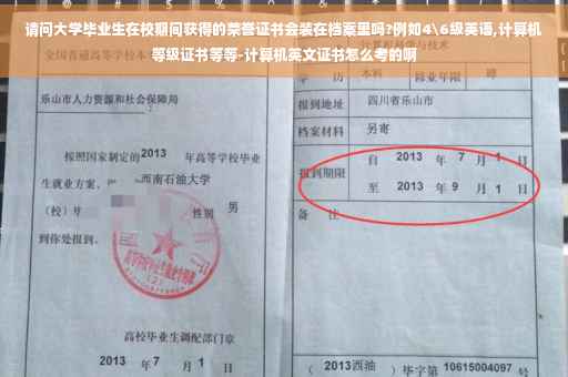 大学毕业生在校期间获得的荣誉证书会,例如4\6级英语,计算机等级证书等等.这些东东是国家认证的,当然会有记录的,当然不是把证书放在里面,放不下,但是里面有你的记录:如XX年,XX以XX分通过了国家英语四级等.但是另外的一种情况,如:你在学校的演讲比赛得奖,在作文大赛里面得奖,或者就是说班上或者社团里面获得奖,如果你上报了的话,会在你的每学期的记录上获奖情况那一栏有的,如果没有上报的话就没有了.学校现在应该都有素质拓展的认证吧,上面有详细的记录.北京反正基本的学校都有!放心吧,四六级,计算机啊是有的!!!:)